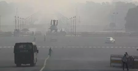 New Delhi: Around 7:40 a.m., a thin layer of fog formed over India Gate and Kartavya Path, resulting in reduced visibility and an Air Quality Index (AQI) of around 350, indicating very poor conditions.