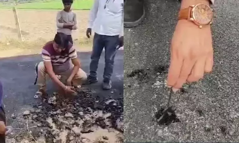 The viral footage appears to show sections of the road surface being lifted by hand, raising concerns about the durability and standards of the project. Residents have alleged that the construction is substandard, claiming the tar layer lacks proper binding and can be removed without the use of tools, suggesting serious lapses in execution.