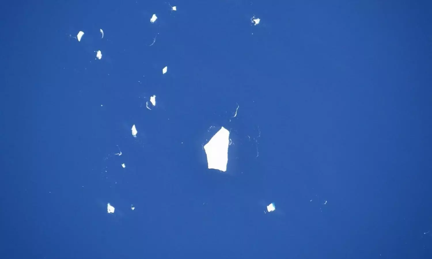Expressing surprise at the visibility of the icebergs, Mogensen remarked, "We have been seeing lots of icebergs lately in the South Atlantic. Perhaps it's their distinct geometry or perhaps the contrast in color, but they are very visible from space."