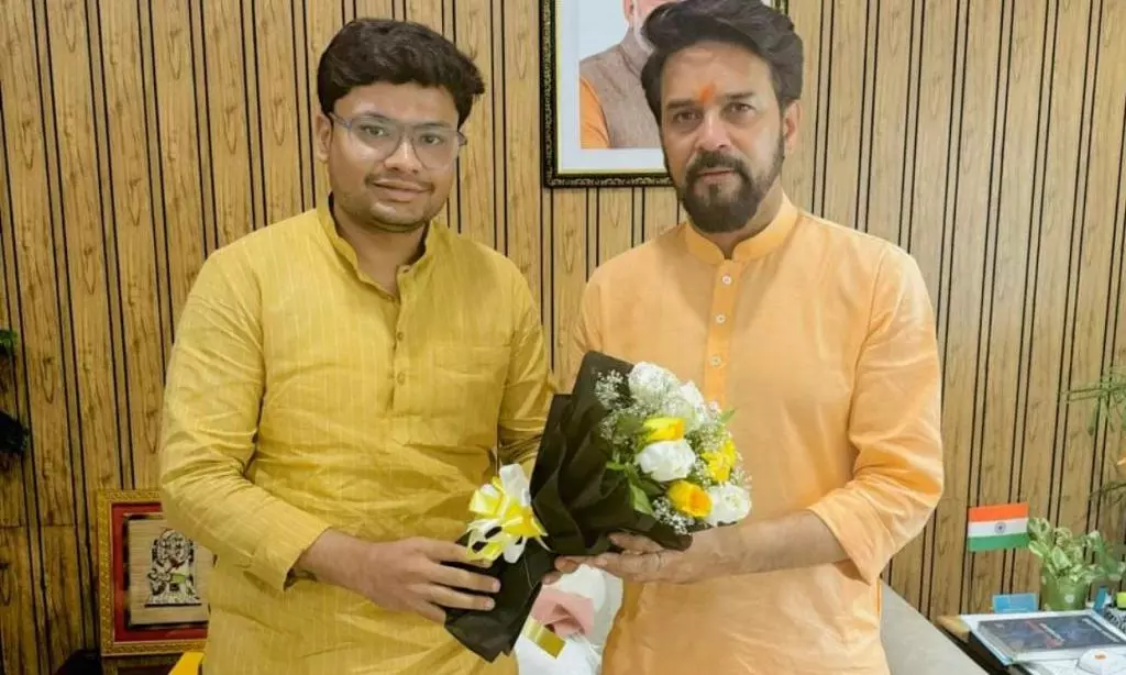 text_fieldsBJYM Varanasi president Rajat Jaiswal with BJP MP Anurag Thakur.