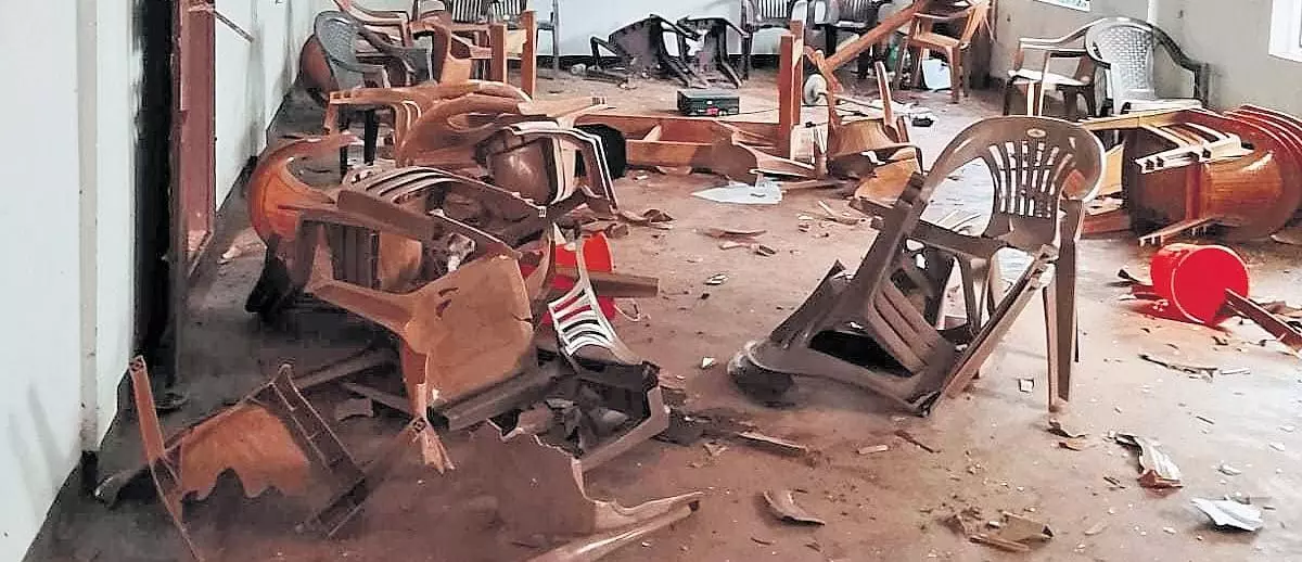 text_fieldsThe DCC office that was vandalised in Mayyil town, Kannur | Photo: Express