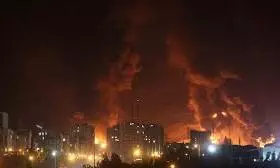 Fuel leaking from one of the depots caught fire, and local accounts described a “river of fire” flowing through nearby streets. Reports also said rainwater mixed with oil and soot fell in the area, prompting warnings for residents to remain indoors amid concerns about possible acid rain.